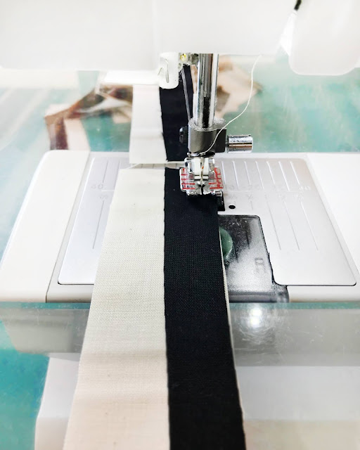 It's great that you can chain piece, sew stripes combos one after another without breaking or cutting the thread, stripe and improv stripes. This makes the process of creating your own improv stripe textile more efficient, which gets you to the fun part of sewing curves quicker.